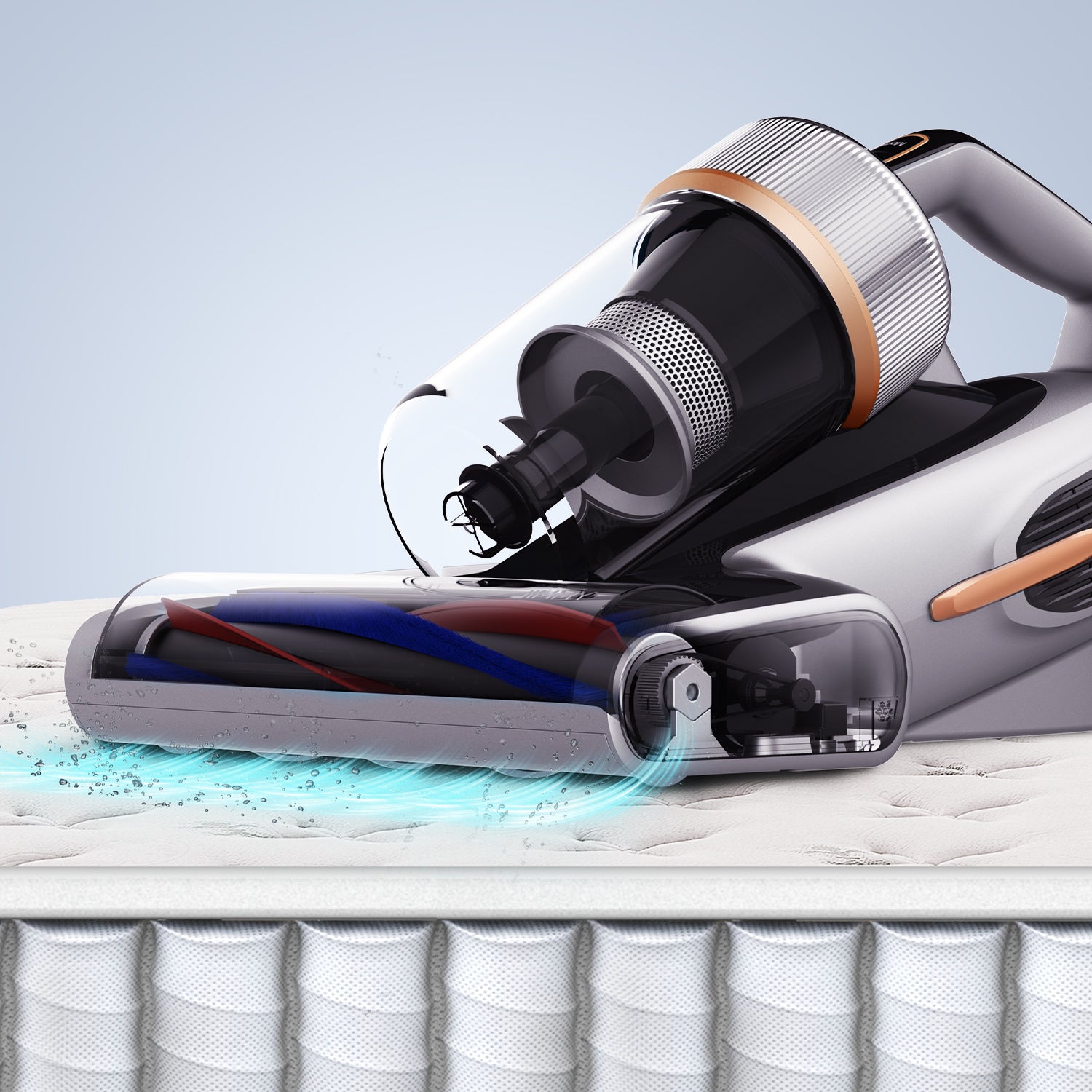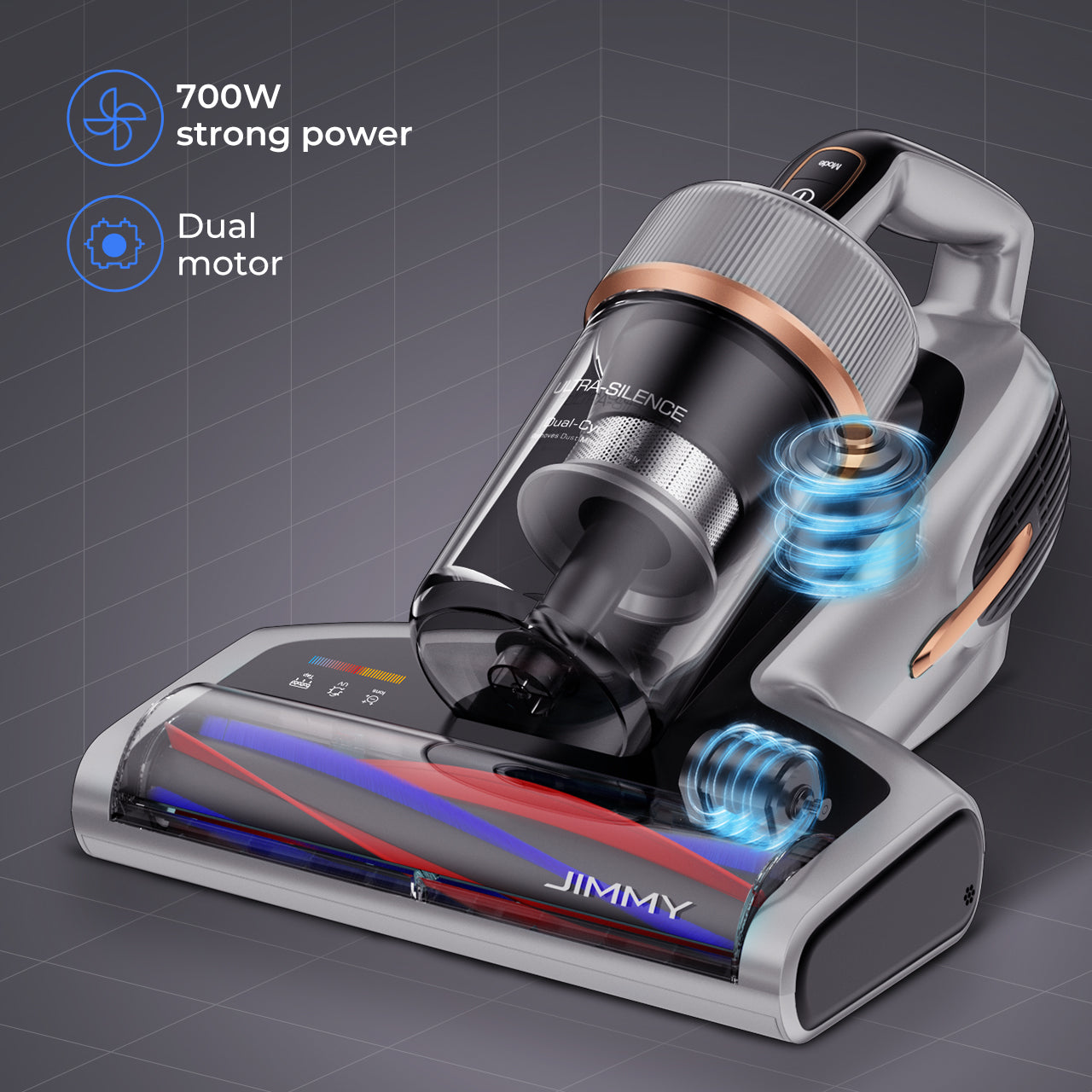 Patented soft rubber strip + soft hair strip composite brushroll, with an independent brushroll motor, JIMMY BX7 Pro Max can easily pick up fine dust and dust mites deep in the mattress without hurting its surface.