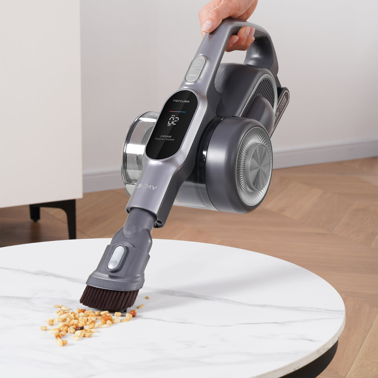 JIMMY H10 Flex uses a self-developed 600W high efficiency brushless digital motor, which generates 245AW of machine suction, more quickly and thoroughly cleans hair on the carpet, large and small debris, and dust in the floor gap.