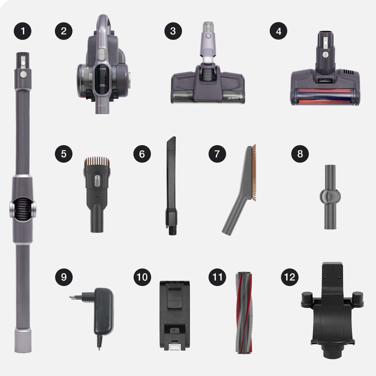 JIMMY H10 Flex uses a self-developed 600W high efficiency brushless digital motor, which generates 245AW of machine suction, more quickly and thoroughly cleans hair on the carpet, large and small debris, and dust in the floor gap.