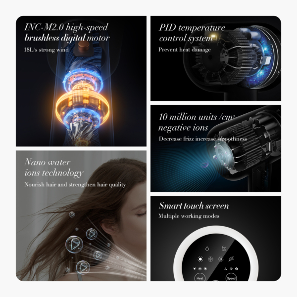 Ultra Fast Dry Hair Dryer F7 Infuse Hair with Nano Water Ions and Smart Touch Screen