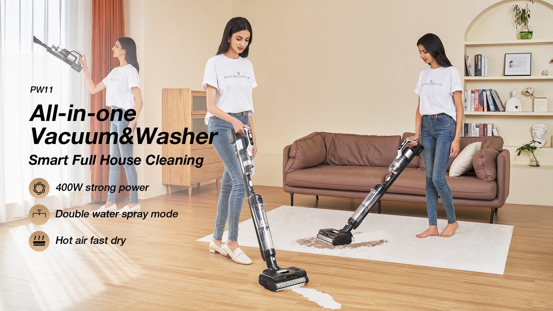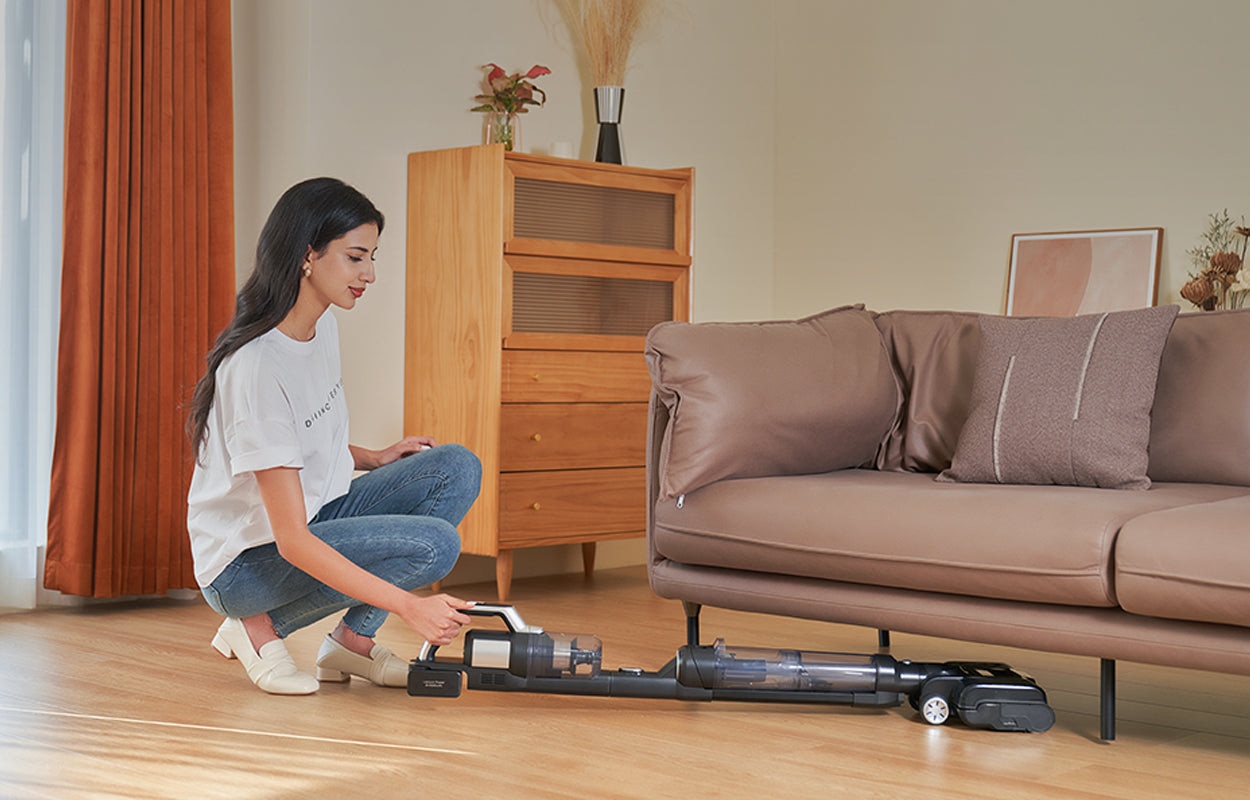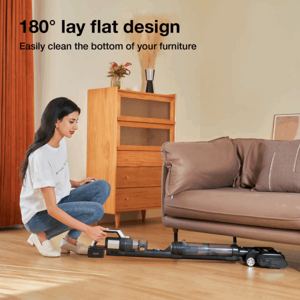 JIMMY PW11 is equipped with an anti-back flow device and can be laid almost flat at 180 degrees, making it easy to clean small spaces like the underside of sofas, beds, chairs, and more.