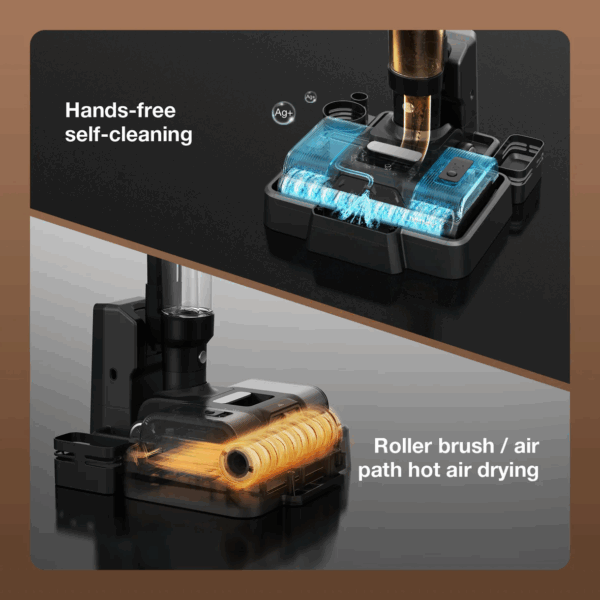 After self-cleaning is completed, the roller brush will automatically dry with hot air. So you don’t have to worry about the roller brush getting moldy or smelling bad.