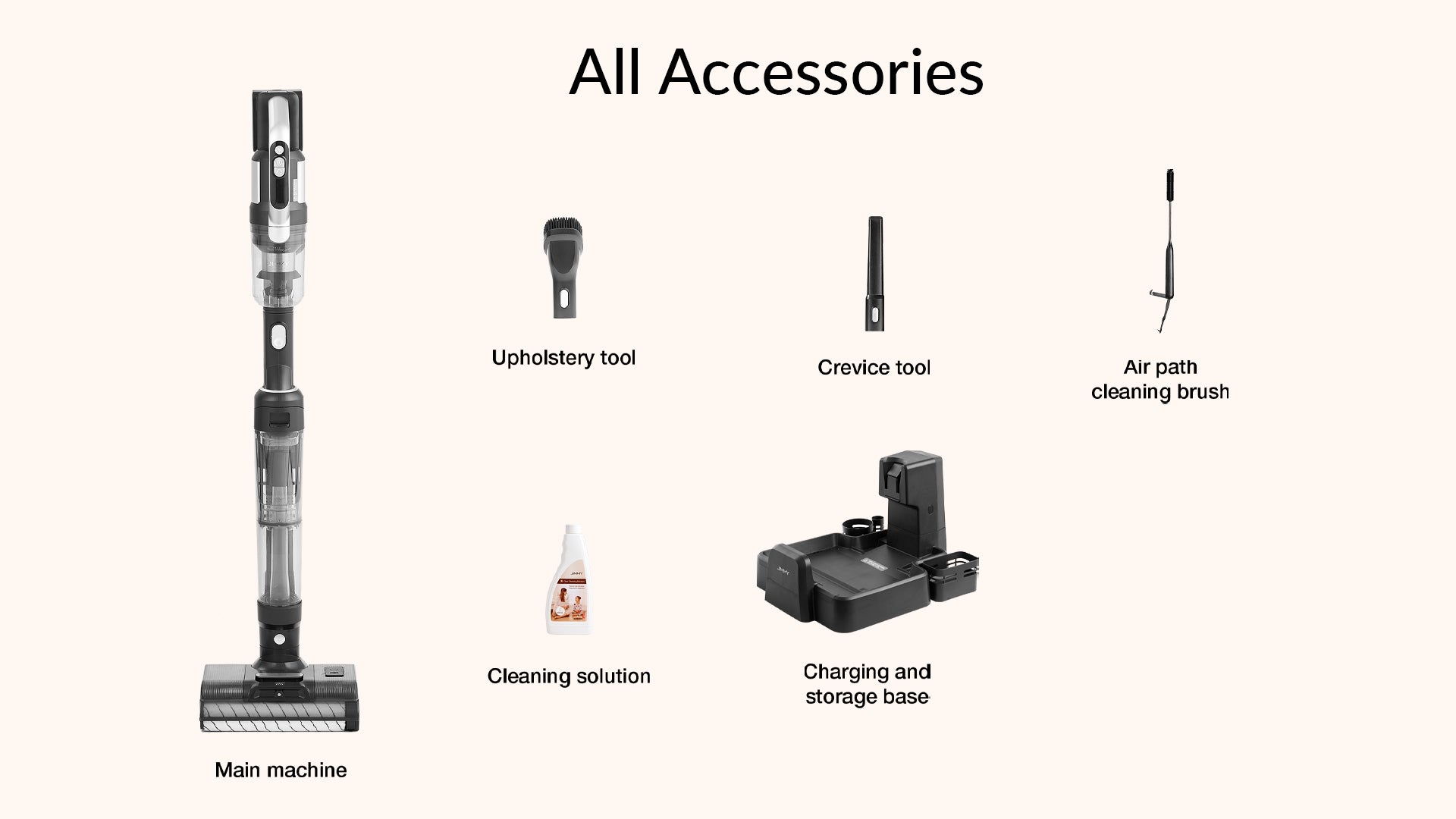 A single press of button, to switch among upright vacuum washer, hand stick vacuum cleaner and handheld vacuum cleaner. With multiple accessories to easily clean carpets, floors, beds, sofas and more.